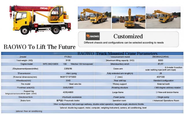The BAOWO BWTC8-L5 is a compact yet powerful 8-ton truck mounted crane designed for customers who need strong lifting capacity, long reach, and easy mobility in one machine.