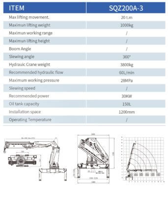 BAOWO SQZ200A-3 Folding Boom Crane | 20 t·m Lifting Moment | 60 L/min High-Flow Hydraulic System | Heavy-Duty Industrial Crane