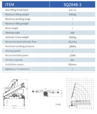 The BaoWo SQZ84B-3 is a heavy-duty Knuckle boom crane engineered for demanding lifting operations. With a maximum lifting capacity of 4000kg and an 8.4 t·m lifting moment, it delivers superior hydraulic power supported by a 28MPa high-pressure system and 360° slewing. Perfect for marine, construction, logistics, and industrial applications. Explore full specifications and request a quote today.