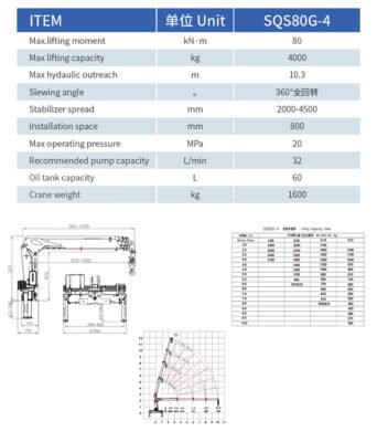 Heavy-Duty SQS80G-4 Truck Mounted Crane | 4 Ton Lift, 10.3m Outreach | 8.0 TM Power