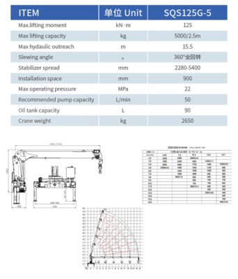 SQS125G-5 Straight Boom Crane | 12.5 TM Power, 15.5m Reach, 5 Ton Lift